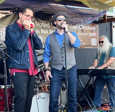 I'm playing piano on this track from the Elliott Bay Blues Band - James Taylor's "Steamroller Blues"